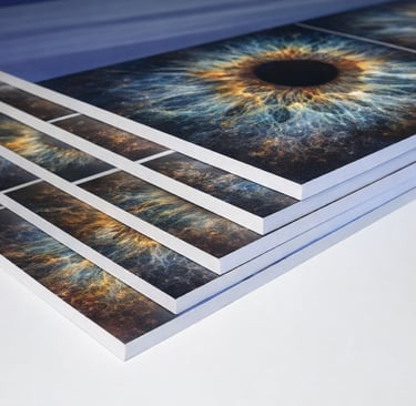 UV baskı teknolojisiyle 4 mm dekota levhaya işlenen özel tasarımlar. Hafif yapısı sayesinde farklı mekânlara kolayca uyum sağlar. Modern, sade ve etkileyici bir sergileme çözümü.