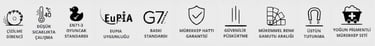 Ürünlerimizde uluslararası kalite standartlarına uygun, 4 mm kalınlığında temperli Şişecam cam kullanılmaktadır.